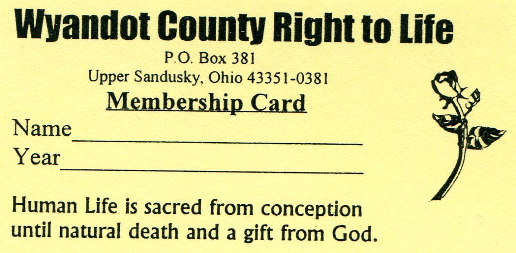 *LIFE TEAM MEMBERSHIP ( Jan 1 – Dec 31): $6+DONATION. Send your donation to: Wyandot Co Right to Life P.O. Box 381 Upper Sandusky, OH 43351-0381. Thanks to each of you who have or will join to show your support of LIFE!